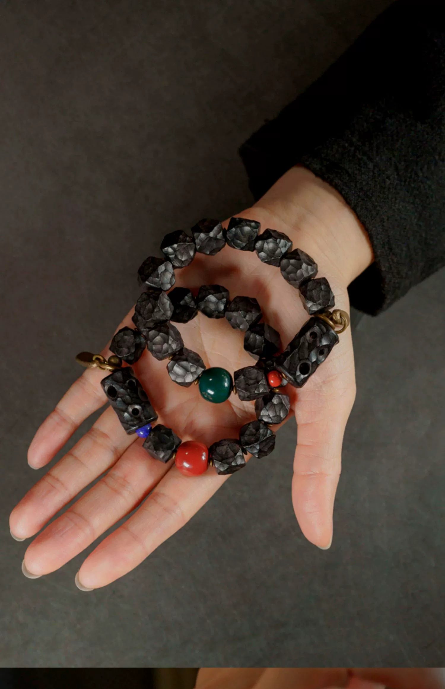Carved Ebony Feng Shui Bracelet for Abundance & Peace
