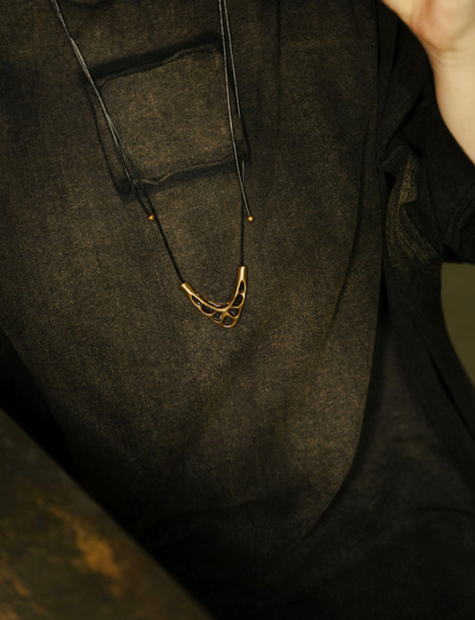 Artisan Vintage V-Shape Hollow Brass Handmade Necklace