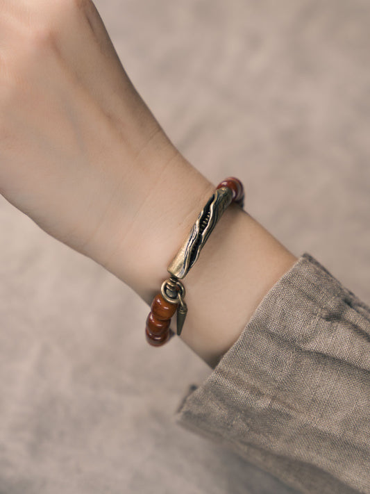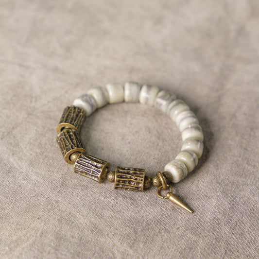 Hand-Carved Ox Bone & Vintage Brass Tube Bracelet (Tibetan Style)