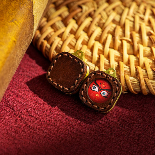 Hand-Painted Tibetan Clay Pendant in Stitched Leather Case (Double-Sided Amulet)