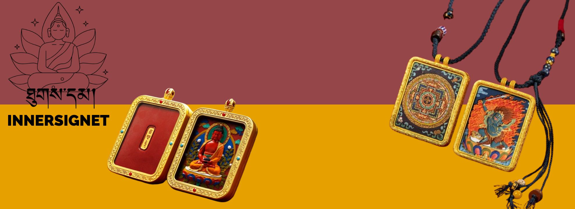 Hand-Painted Cinnabar Thangka Pendant (Brass Frame) - 15 Deity Options