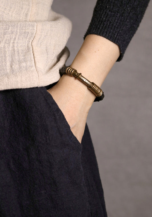 Hand-Carved Ebony Wood & Coiled Brass Bracelet (Vintage Men's Style)