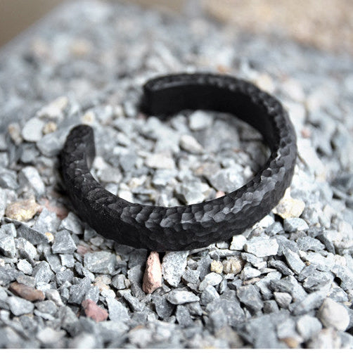 Home Bracelets Hand-Carved African Ebony Cuff Bracelet with Meteorite Crater Texture