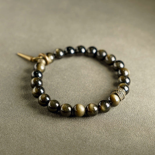 Golden Obsidian & Brass Feng Shui Bracelet for Wealth & Strength