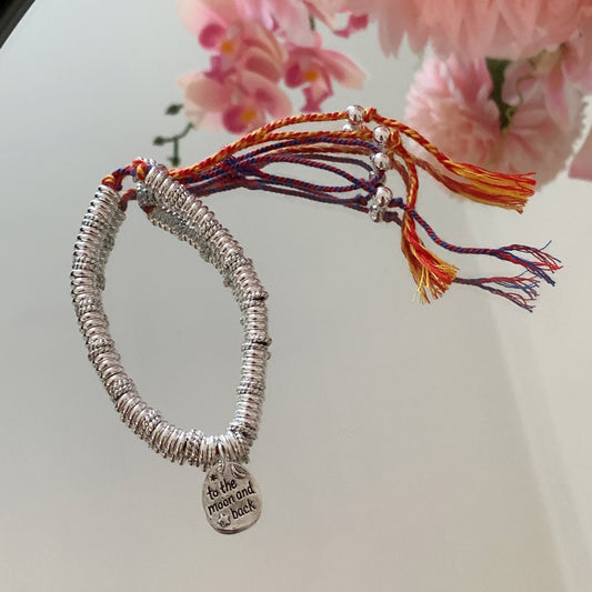 Tribal Red String Braided Bracelet with Vintage Silver Rings & Charms (Adjustable)