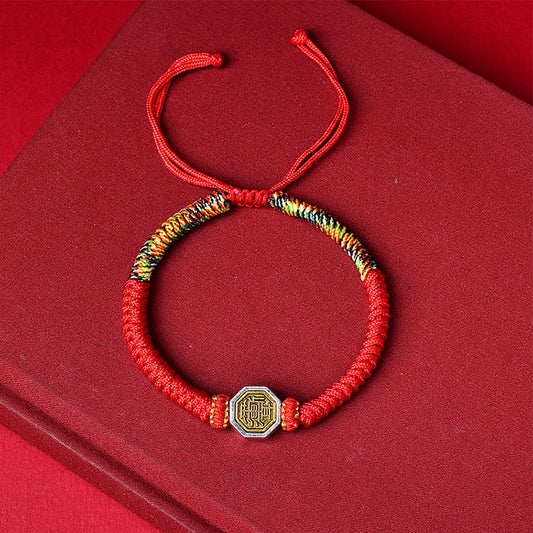 Yin Yang Bagua Red String Bracelet with Five-Color Vajra Knot (Adjustable)