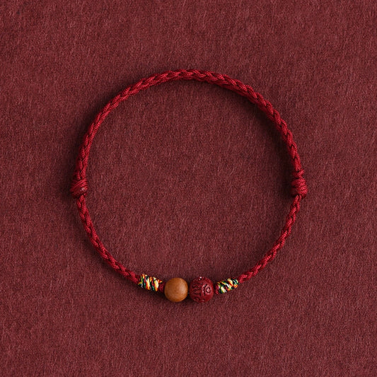 Hand-Braided Red String Cinnabar Bracelet for Luck & Protection