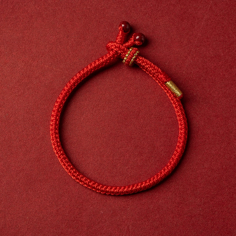 Hand-Braided Red String Cinnabar Bracelet for Luck & Protection