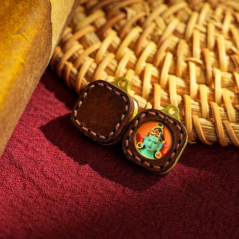 • Nomadic Leather: The clay core is protected by a Brown Leather Case with visible hand-stitching. This design evokes the rugged, earthy aesthetic of Tibetan nomadic culture.
