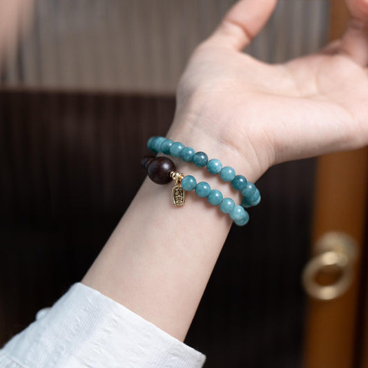 Zen Forest: Sandalwood & Blue Water Jade Chinese Bracelet