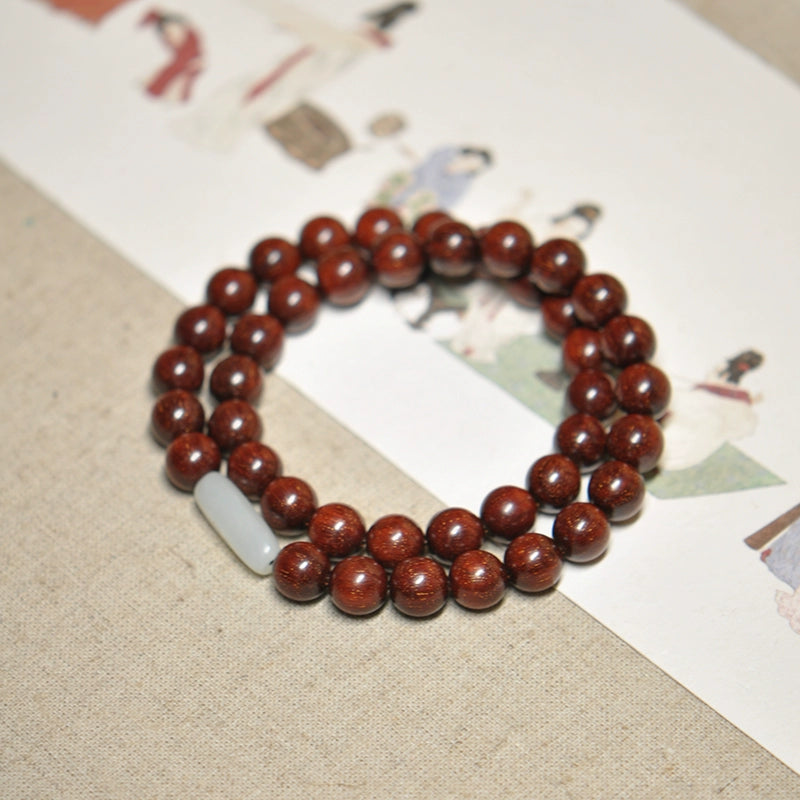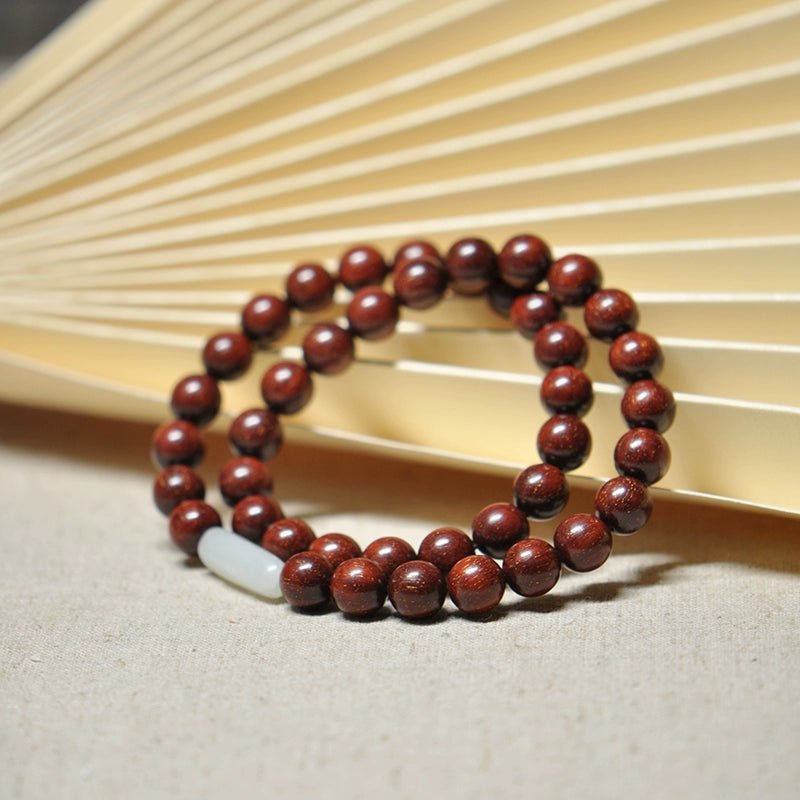 African Padauk & White Jade Bracelet for Purity, Healing & Protection