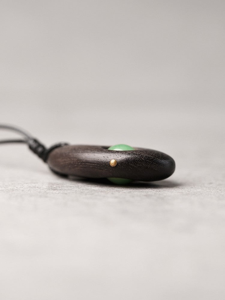 A harmonious blend of terrestrial strength and revitalizing energy, the "Zenith Heart" is a premium handmade necklace crafted for those who seek balance in a fast-paced world. This elegant wooden necklace features a smooth, pebble-shaped ebony pendant, inlaid with a vibrant Green Aventurine sphere, creating a visual representation of a forest canopy meeting the deep earth.