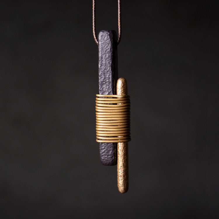 Hand-Forged Ebony and Raw Brass Totem Necklace