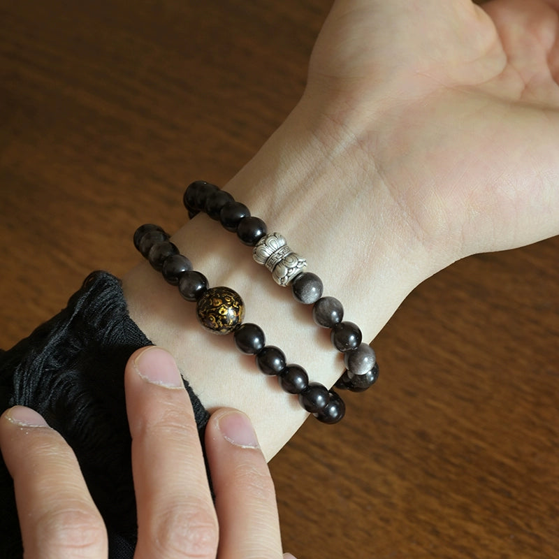 • The Other Half: Composed of polished, round beads of genuine Silver Sheen Obsidian (8mm), showcasing a mystical silver luster and representing insight and protection.