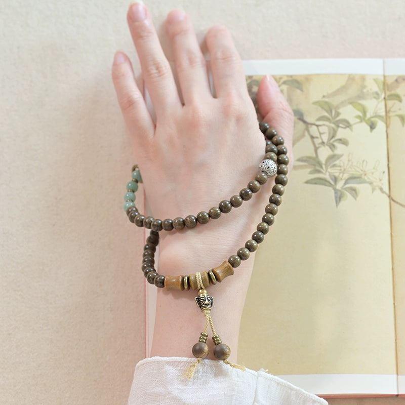 Find your sanctuary with this beautifully crafted buddha beads mala, a piece that combines the grounding energy of sacred wood with the restorative power of jade. Designed as more than just a chinese jade bracelet, this is a tool for your journey toward spiritual growth, intended to enhance your vitality and promote holistic healing. Its versatile, multi-wrap design, suitable for both men and women, makes it a meaningful accessory for daily wear or meditation.