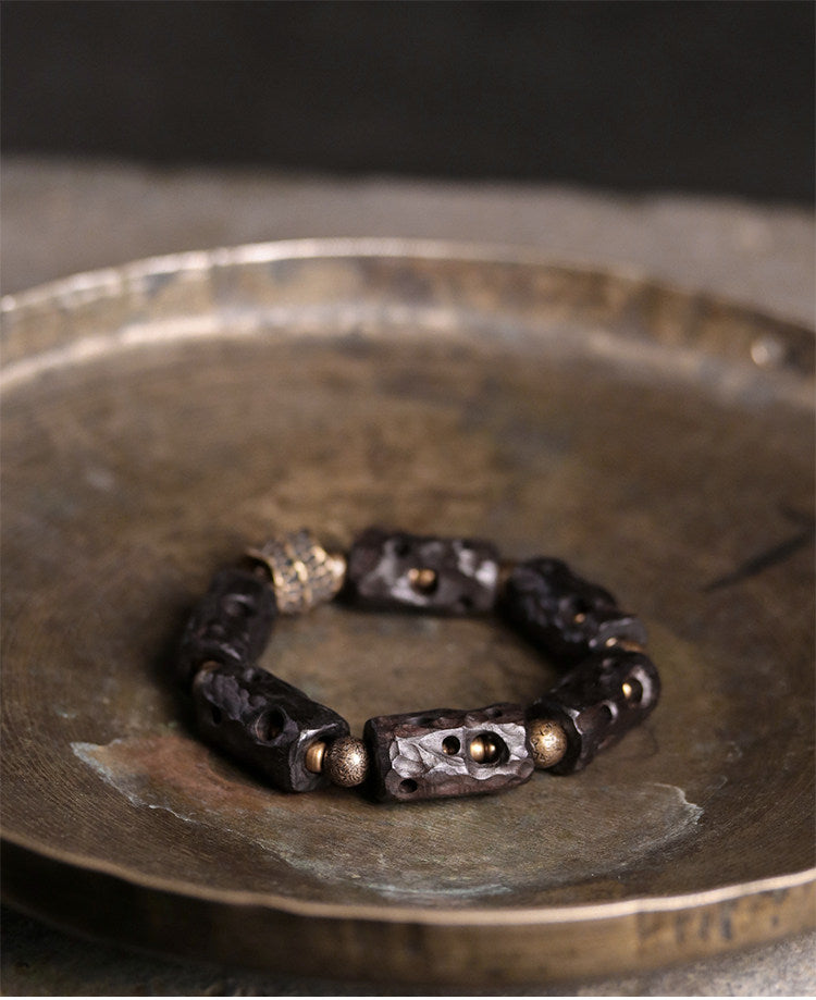 • Hand-Carved Textures: Every ebony bead is uniquely pitted and carved by hand, ensuring that no two bracelets are identical in their "hammered" wood finish.