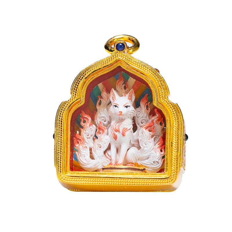 In Tibetan culture, a Gau is a container used to hold sacred relics or images. This pendant reimagines that tradition: