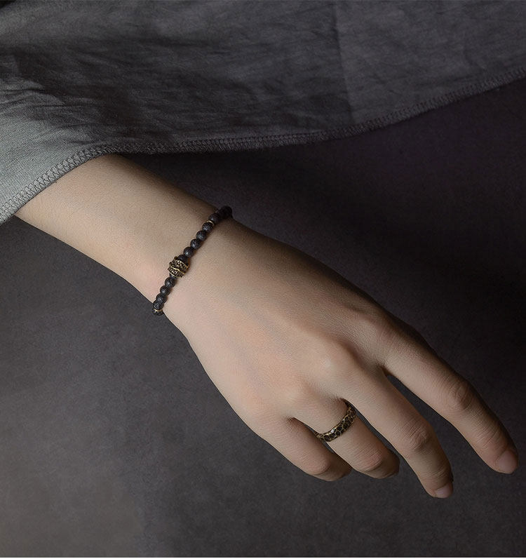 • Micro-Bead Aesthetic: Uses 4mm lava stone beads, providing a refined, low-profile fit that layers perfectly with watches or other brass bracelets.