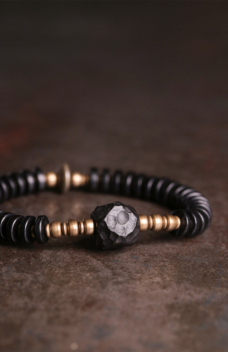 Central to this design is natural Ebony wood, prized for its dense grain and protective energy. Often associated with grounding and mental clarity, this wooden bead bracelet is designed to evolve with you. The hand-hammered focal bead serves as a visual anchor, representing strength and resilience in the face of daily challenges.