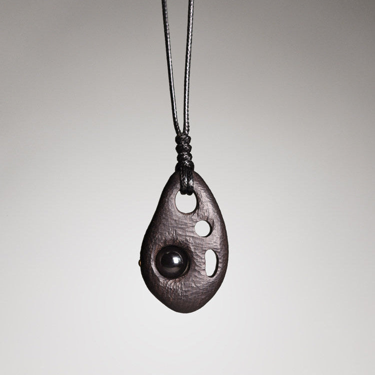 Discover the "Void & Vision," a soul-stirring wood pendant necklace that bridges the gap between the terrestrial and the ethereal. Hand-carved from the heart of dense ebony, this piece is designed as a wearable sanctuary, featuring an organic teardrop silhouette with intentional "voids" that represent the space between thoughts during deep meditation.