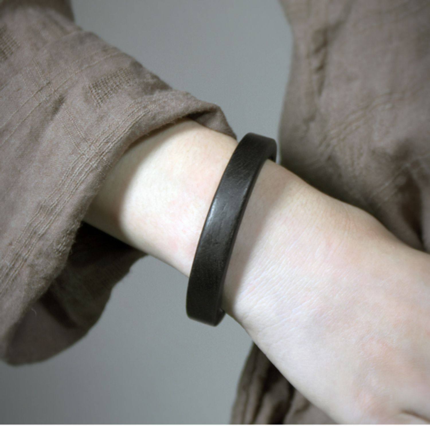 Hand-Polished Solid Ebony Wood Cuff Bracelet - Minimalist Grounding Bangle
