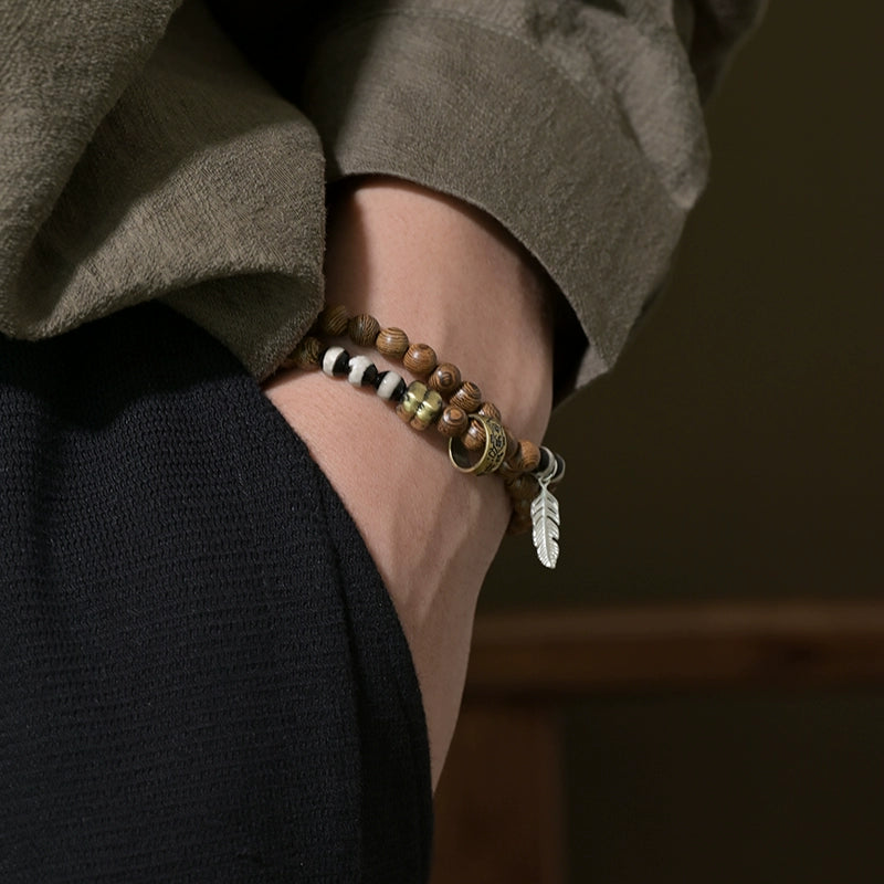 This bracelet is a fortress of spiritual Protection. The Striped Dzi Agate beads are ancient talismans believed to ward off negative energy and obstacles. The movable Bronze Amulet Ring acts as a personal guardian, constantly shielding your aura. The grounding Wenge wood provides a stable foundation, ensuring your energy remains secure and centered.