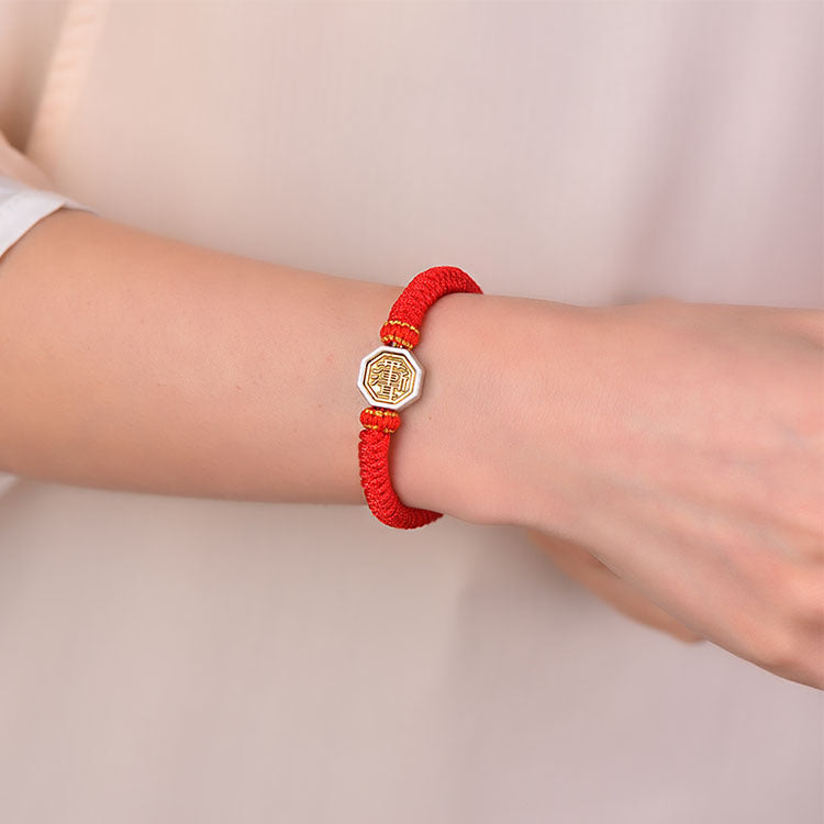 Yin Yang Bagua Red String Bracelet with Five-Color Vajra Knot (Adjustable)